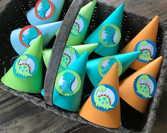 Dinosaur Birthday Party Hats Dinosaur Hats Rainbow Cone Etsy De